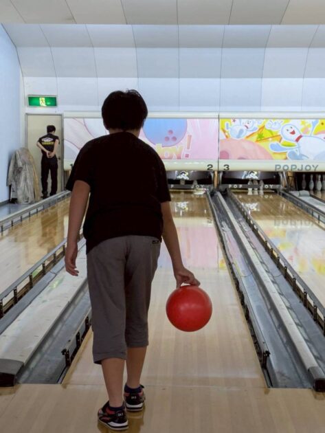 今回のレーンはガター無しのみで行い、子どもたちは両端の壁を上手に利用してピンを倒していました。