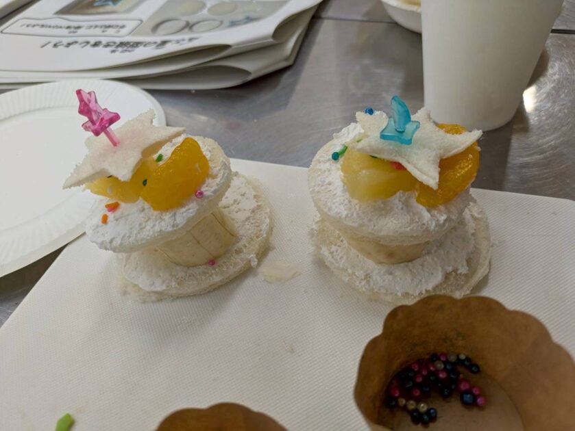 完成したスイーツは、保護者の方と一緒に味わいながら、今回の活動について振り返る時間となりました。