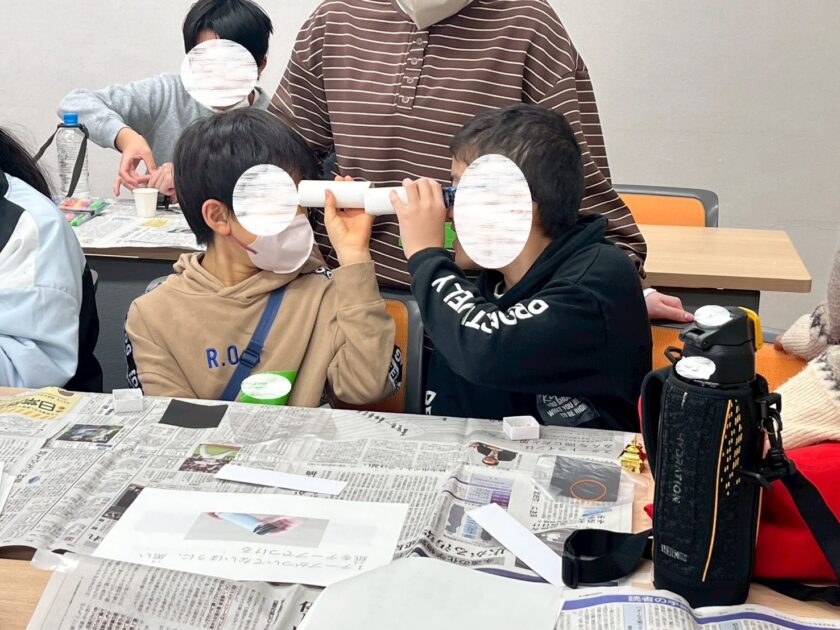 完成した万華鏡を覗き込みながら、「どんな模様に見えるかな」と楽しそうに試す姿が印象的でした。