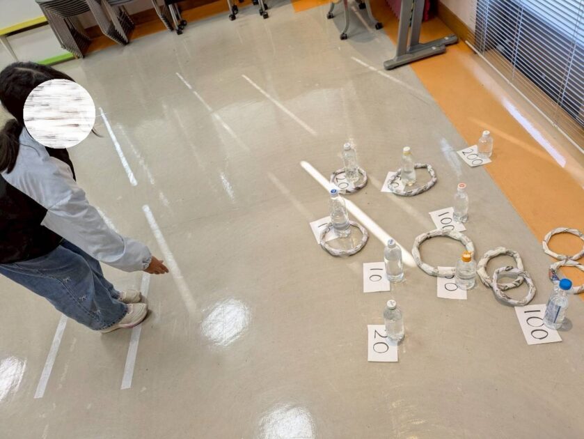 輪投げ・福笑い・紙コプターのブースを自由に回り、思い思いに楽しんでいました。